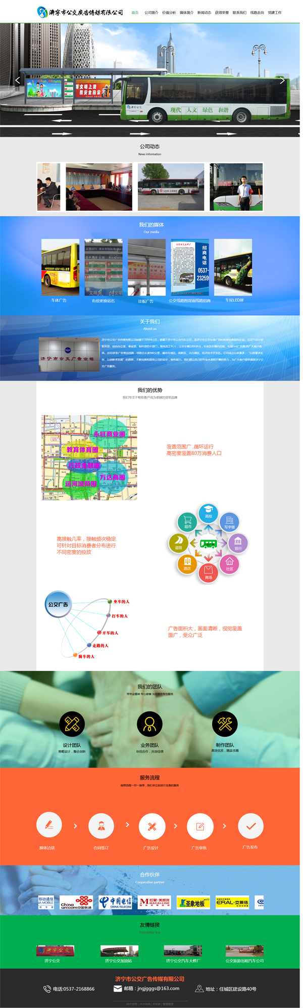 濟寧市公交廣告傳媒有限公司始建于1994年1月,隸屬于濟寧市公共汽車公司,是濟寧市公交車體廣告的獨家經營國有企業。公司下設計劃財務部、綜合辦公室、事業部、制作部四個部門,現有員工91人,公交車輛1000多臺,車體及車輛內掛板、車尾Led廣告屏,供廣大客戶選擇。近60多條廣告營運線路,線路總長度980公里,遍布任城區、高新區、太白湖區、經濟技術開發區。公司成立以來秉承:“以質量求生存、以創新求發展”的原則,不斷完善和提高公司的設計,制作能力。我們愿以自己的專業水準和不懈的努力,為廣大客戶提供滿意濟寧公交廣告服務。